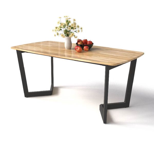 Bàn ăn chân sắt hộp 30x60 tạo hình chân chữ V, sơn đen sần hoặc kem. Mặt bàn gỗ cao su ghép thanh dày 20mm. Có 2 màu sơn gỗ: nâu cánh gián và vàng tự nhiên. Gỗ cao su có tính đàn hồi, dẻo dai, bền bỉ, không ngậm nước và không thấm nước, dùng lâu vẫn giữ được độ mềm mại, thanh thoát.