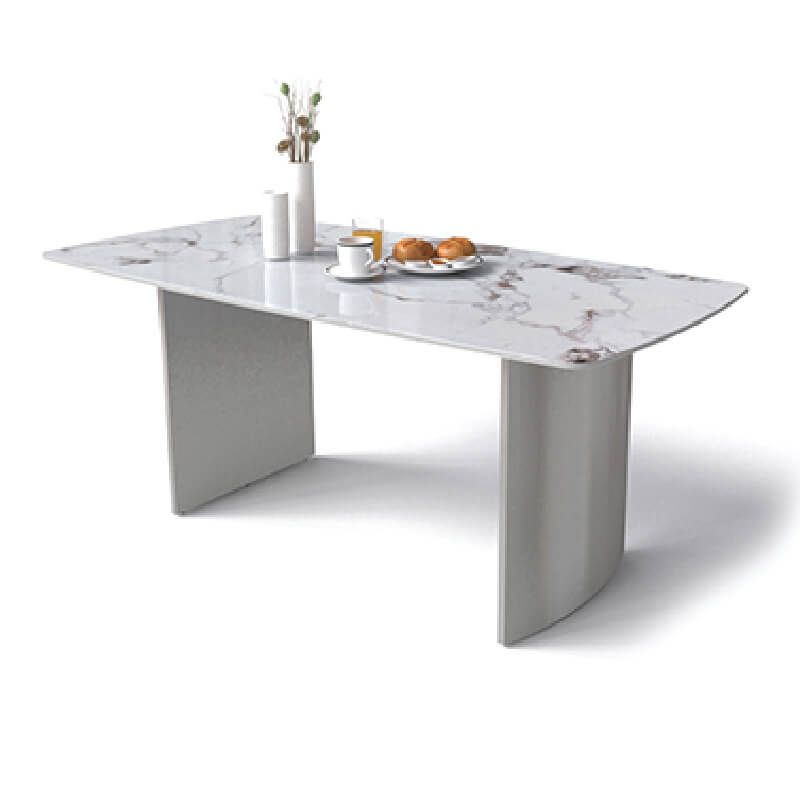 Bàn ăn chân làm từ inox tấm mờ màu ghi dập ép tạo hình chỏm cầu. Khung mặt bàn thép hộp 20x40 sơn đen sần. Mặt đá ceramic dày 12mm có độ cứng và khả năng chịu lực cao, chống va đập, trầy xước và nhiệt độ cao. Bàn ăn thiết kế tỉ mỉ, tinh tế trong từng đường nét, giúp không gian trở nên ấn tượng, độc đáo.
