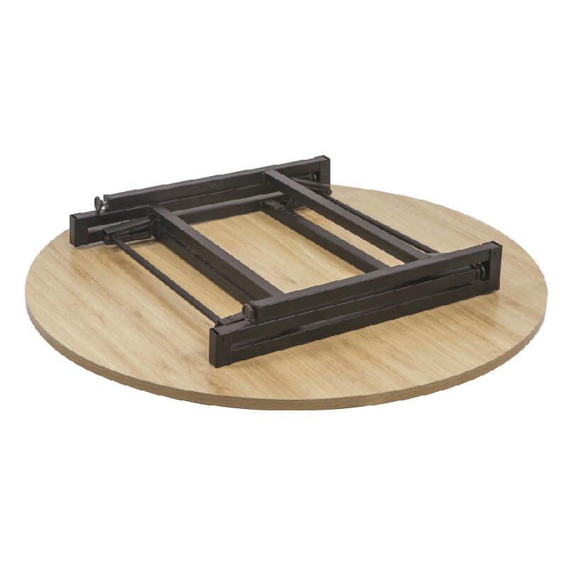 Bàn Gấp Chân Sắt, Bàn Thông Minh BGT12 thuộc dòng bàn họp văn phòng hiện đại. Bàn gấp chân sắt sơn tĩnh điện màu đen. Khung chân thép hộp 30x30 dày. Mặt bàn tròn bằng gỗ phủ lớp Melamine sáng bóng.