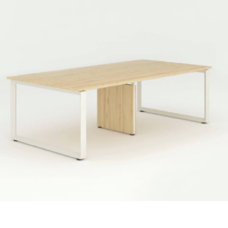 Bàn Họp Chân Sắt 1906BH36 dài 3.6m kiểu chân 1906, chân bàn sắt ống tam giác 60x60x82 hình chữ O, sơn tĩnh điện màu trắng, Chân giữa ốp gỗ 2 bên. Bàn Họp Văn Phòng 1906BH36 có mặt bàn gỗ công nghiệp phủ Melamine dày 25mm sáng bóng.