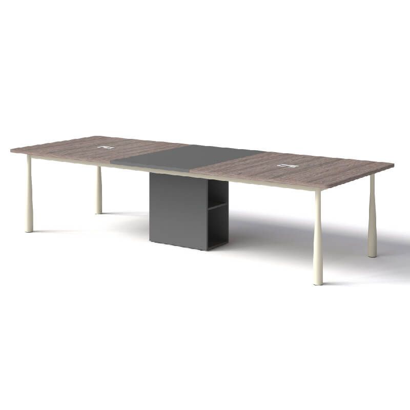Bàn họp chân sắt 3m2 kiểu chân bàn sắt đẹp gậy bóng chày, chân sắt sơn màu đen sần hoặc kem, thanh giằng hộp 25x50, có hộc tủ gỗ ở giữa làm chân bàn. Mặt bàn gỗ MFC dày 25mm chống xước, chống cong vênh, mối mọt, bền bỉ theo thời gian. Có nhiều màu sắc lựa chọn phù hợp sở thích, màu chủ đạo văn phòng.