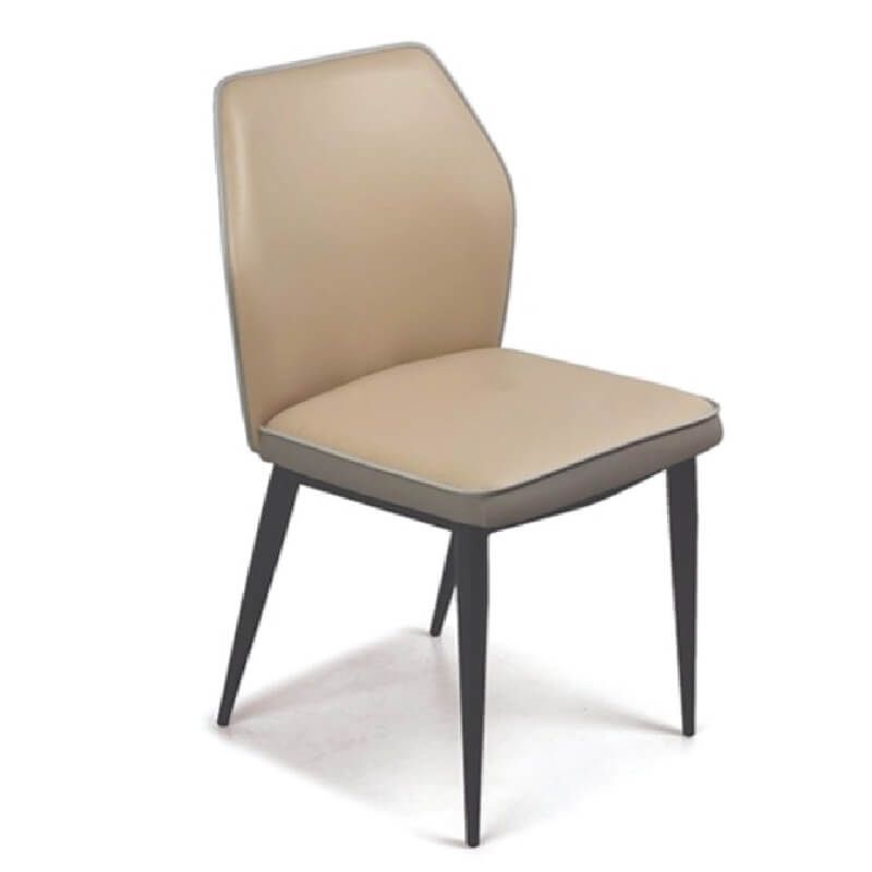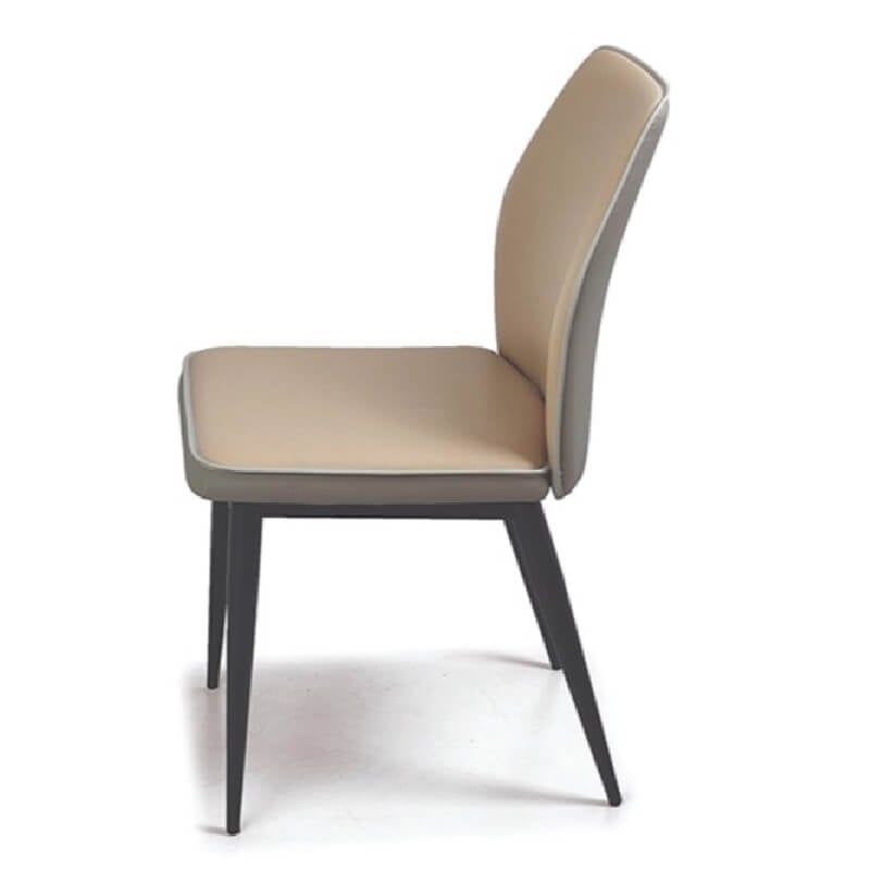 Ghế có đệm ngồi và tựa lưng bằng phôi cốt gỗ Plywood dày cao cấp siêu bền, bề mặt bọc mút và da PU nhiều màu theo bảng màu tùy chọn, khung chân ống tròn tóp côn Ø38, sơn tĩnh điện màu đen sần.