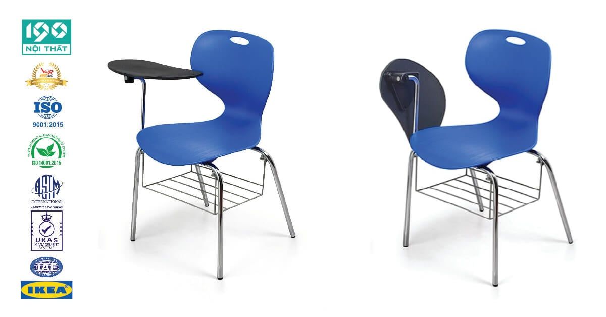 Ghế được tin dùng tại các trường học quốc tế, trường dân lập và trung tâm ngoại ngữ lớn tại Việt Nam, Ghế chịu được trọng tải hơn 180kg, Thân ghế được đúc dày nguyên khối với chất liệu nhựa nguyên chất kết hợp bộ khung ghế dày 2,5mm. Ghế được sản xuất bằng khung thép cường độ cao và Polypropylen nguyên chất để đảm bảo độ bền của chúng trong lớp học. Màu sắc tùy chọn theo bảng màu. Bắt vít liên kết khung ống thép siêu dày và mặt nhựa. Tạo nên chiếc ghế vô cùng chắc chắn, chịu được tác động cao gần như không thể phá vỡ.
