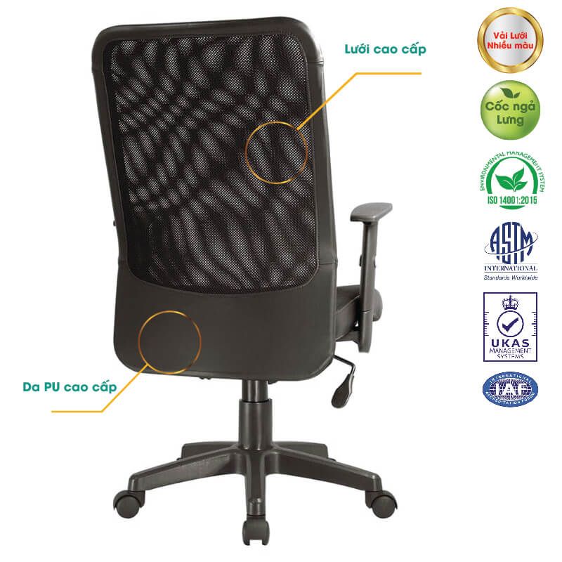 + Lưng ghế được bọc vải lưới tạo độ thoáng và chống tích nhiệt ở lưng