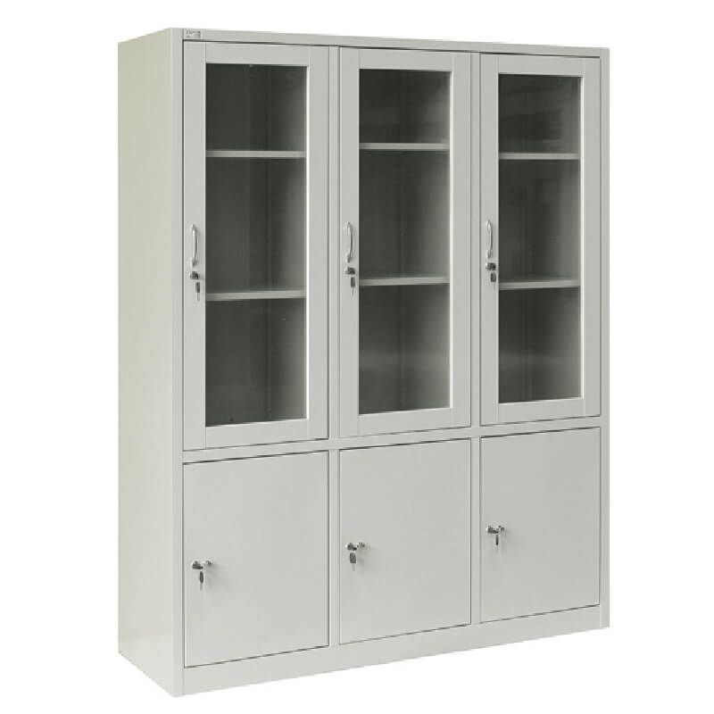+ Tủ đứng có 3 khoang,3 cánh kính trên mở và 3 cánh sắt dưới mở